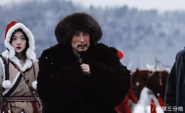 然后是成泰燊,他在剧里演了一个山西马帮的帮主“常四爷”。 看他穿着一件大氅,头上带着棉帽,裹严严实实的,这才像冬天里角色该有的造型。
